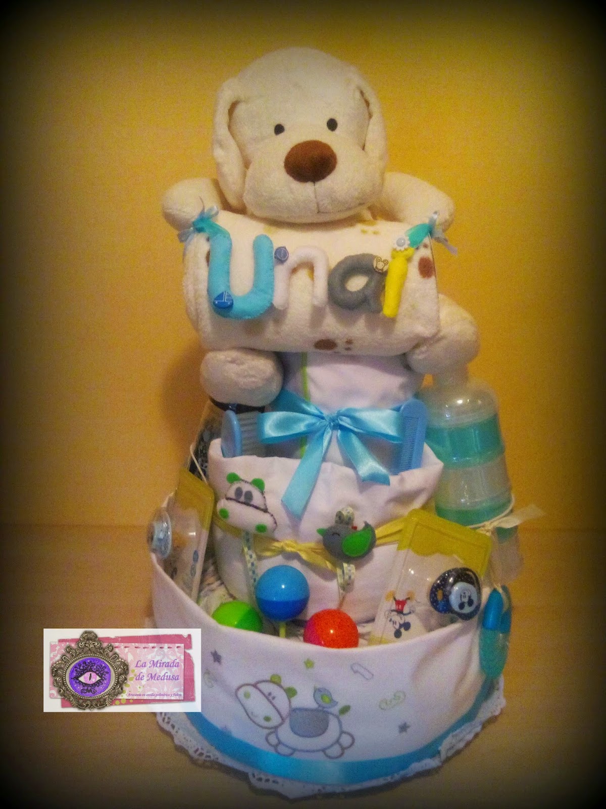 Así que eligieron un combinado, es decir, una tarta de pañales con un montón de detalles de canastilla.
